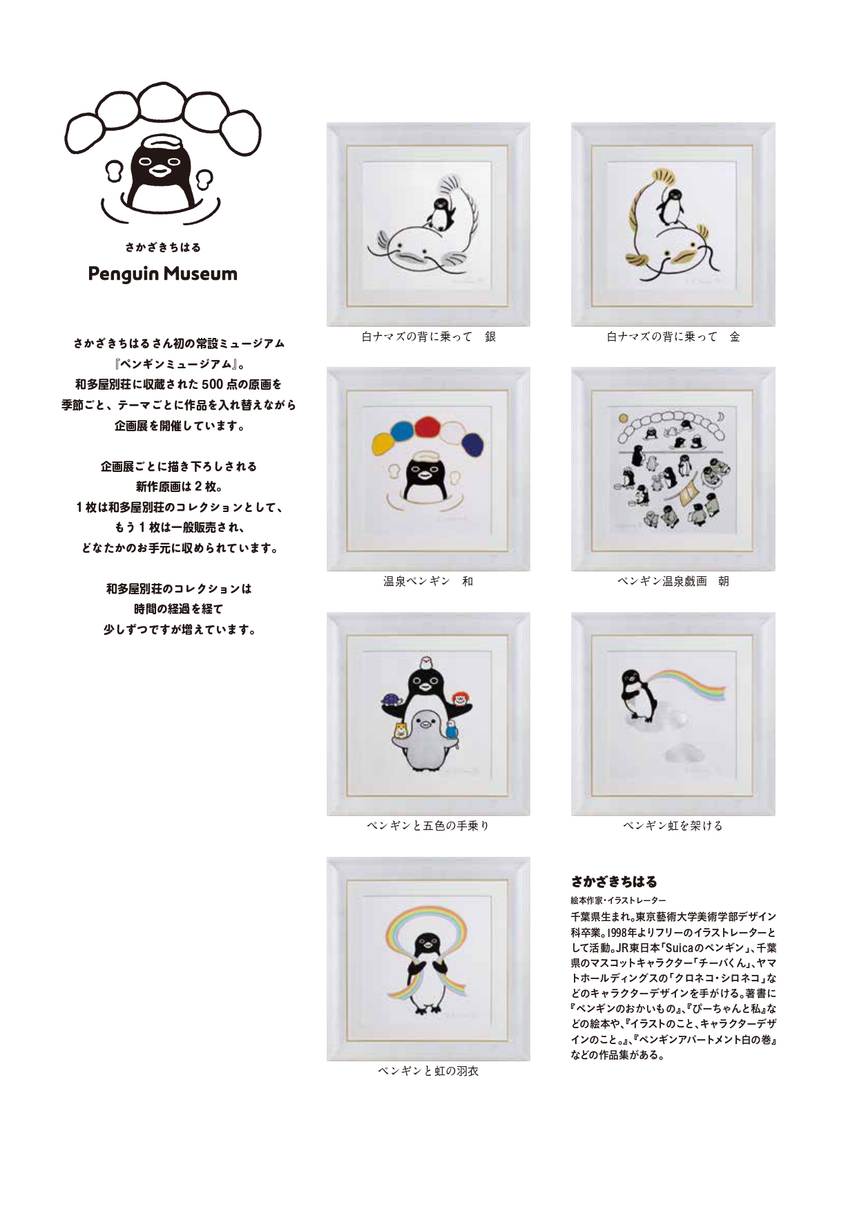 「ペンギンアパートメント」には5つの大きなテーマがあります。そしてペンギンミュージアムにはそれら5つのテーマ、それぞれ100点ずつ、全部で500点が所蔵されています。今回はその中から、〈動くペンギン〉にフォーカスし、さかざきちはるさんによる新たな解説とともにお届けします。