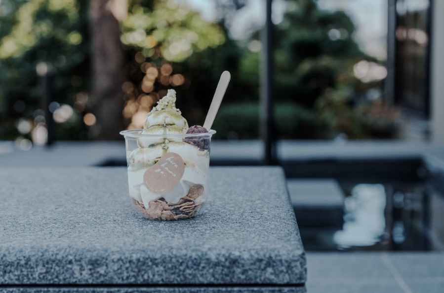 和多屋別荘店限定の豆乳パフェ抹茶金時 をご提供しています。