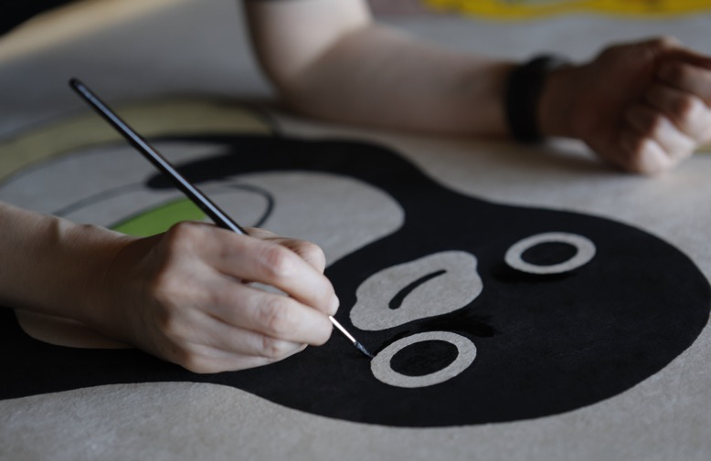 名尾和紙に描かれた2メートルの壁画アートが魅力。