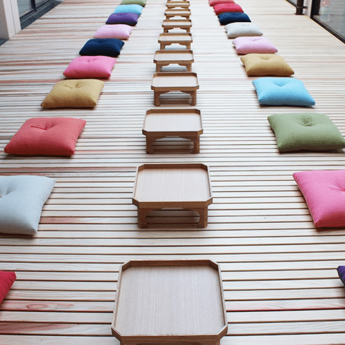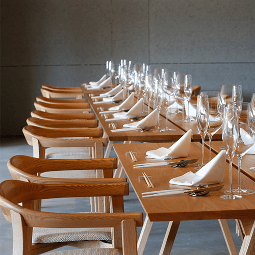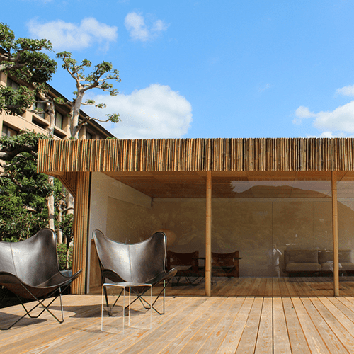 神社仏閣のような閑雅な空気感と、日本の伝統建築の侘寂や色彩を表現した空間の創造。館内は美術館を思わせるような空間で演出構成されており、それは樹木や花々、月や川までもが一体となっています。四季、月齢、節句、時間、天候に応じた空間を設え、館内に配される数百か所に及ぶ設えや花の演出が空間に変化と喜びと彩りを添え、目を愉しませてくれます。