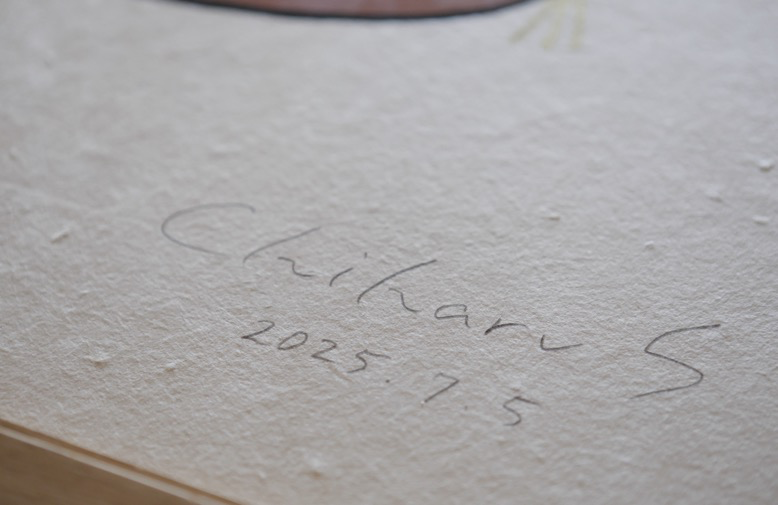 名尾和紙に描かれた2メートルの壁画アートが魅力。